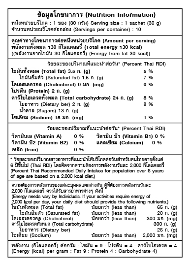 วิธีการชง : 1 ซอง (30 กรัม) เติมน้ำร้อนประมาณ 180 มล. คนให้เข้ากัน Serving Suggestion: Use 1 sachet (30 g) for a cup of 180 ml of hot water and stir gently