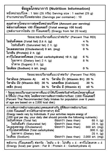 วิธีการชง : 1 ซอง (25 กรัม) เติมน้ำ ร้อนประมาณ 180 มล. คนให้เข้ากัน Serving Suggestion: Use 1 sachet (25 g) for a cup of 180 ml of hot water and stir gently